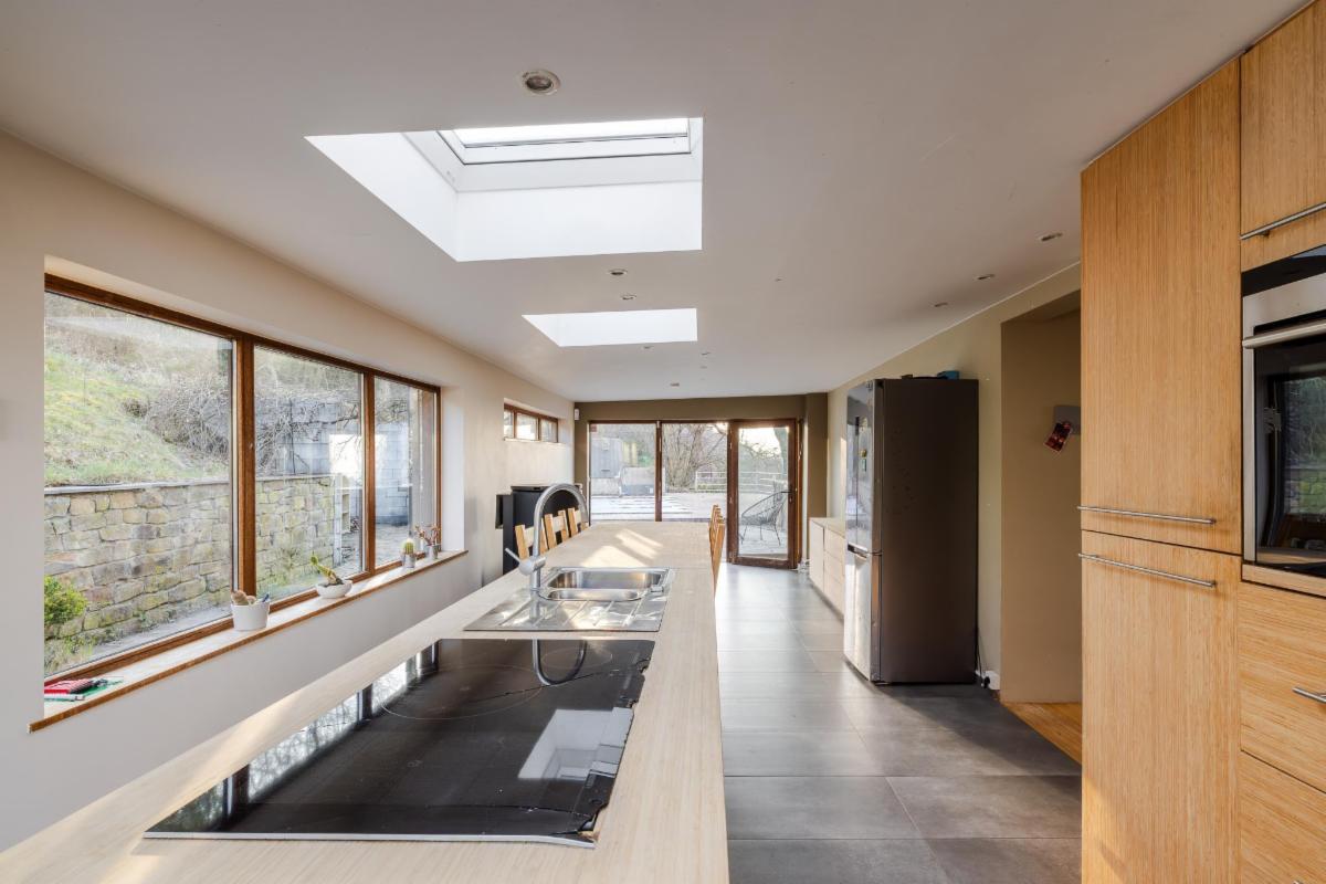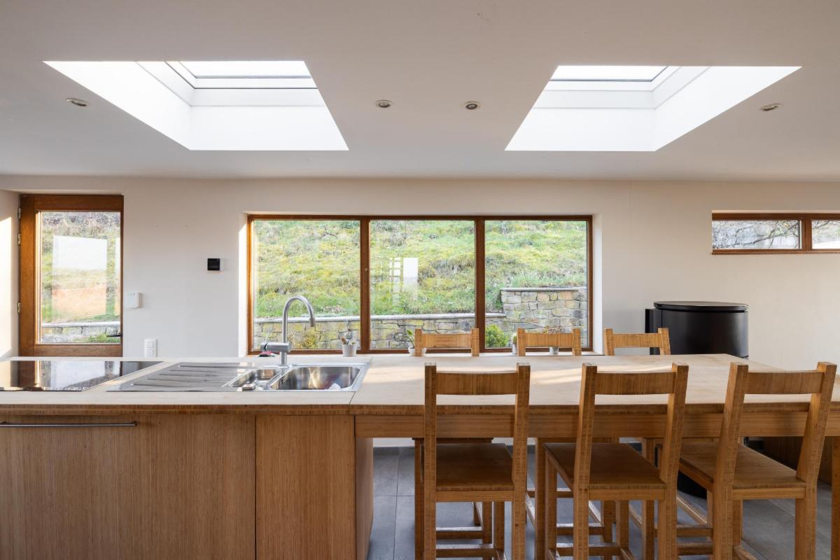 - Premier étage avec hall, cuisine ouverte, deux chambres et salle de bains